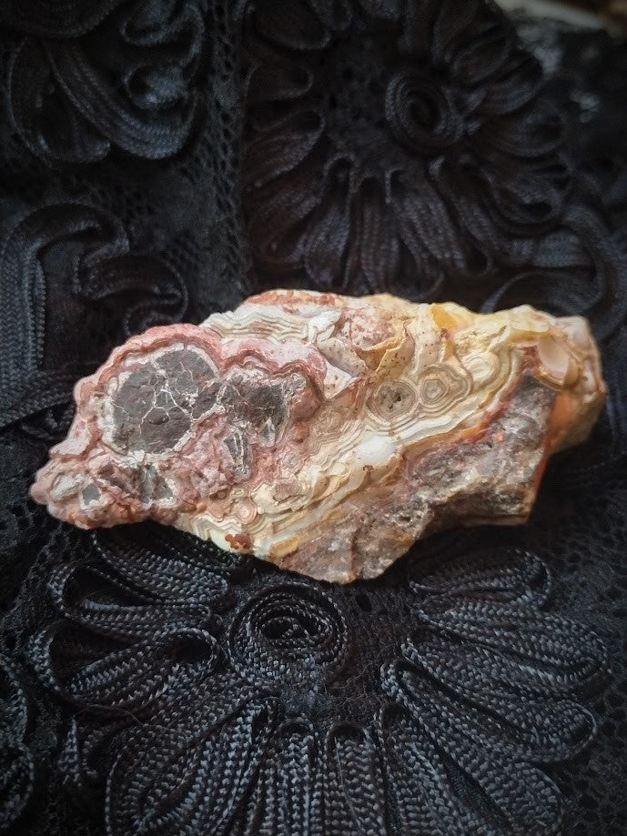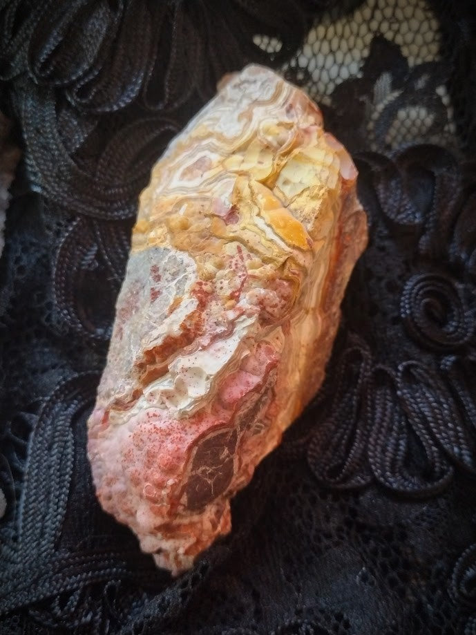 This relic stone was recovered from the subterranean sanctums said to line the halls of Agartha, the hidden realm where the ancient Solar Priests tended the flames of the Inner Sun. It carries the serpentine pulse of the Earth’s molten heart—an eternal rhythm of light moving through shadow, creation through destruction.